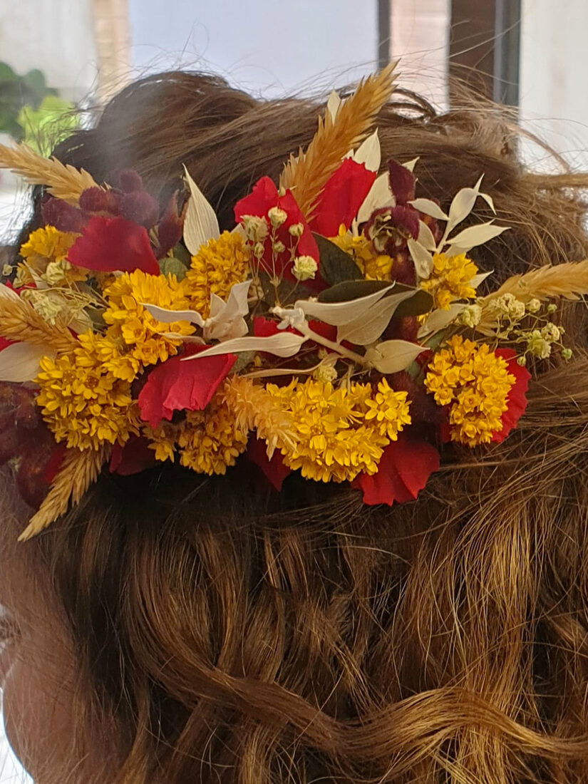 Décoration personnalisée : centres de tables, décoration florale de l’église, bouquet de mariée, décoration de capot et/ou plage arrière de voiture, bijoux, boutonnières de invités …